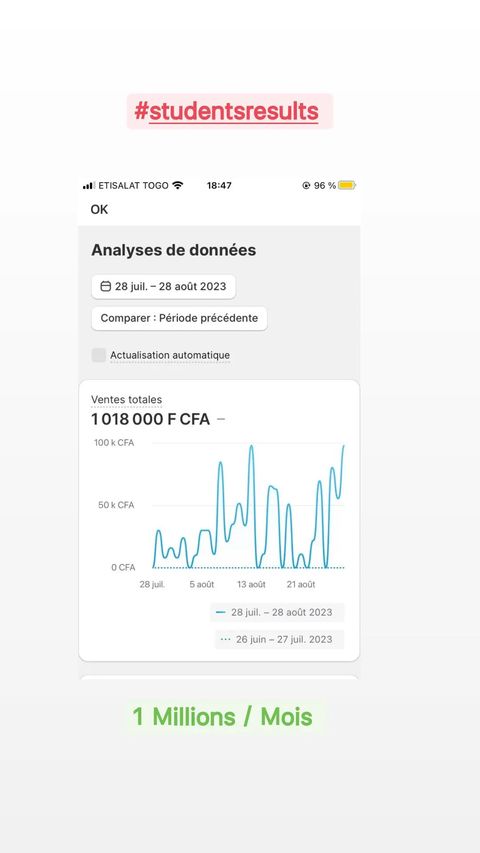 De tomber sur une excellente formation en e-commerce, ce qui t’a permis de générer un chiffre d'affaires impressionnant dès le début.